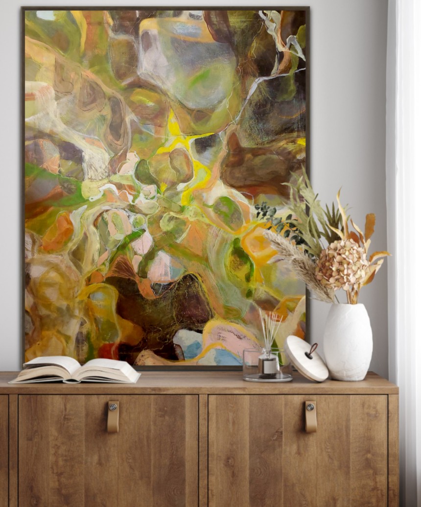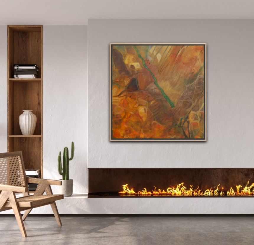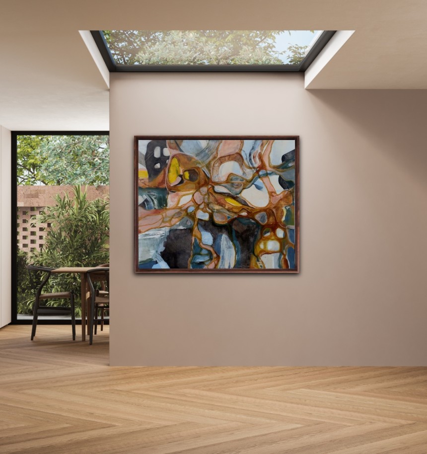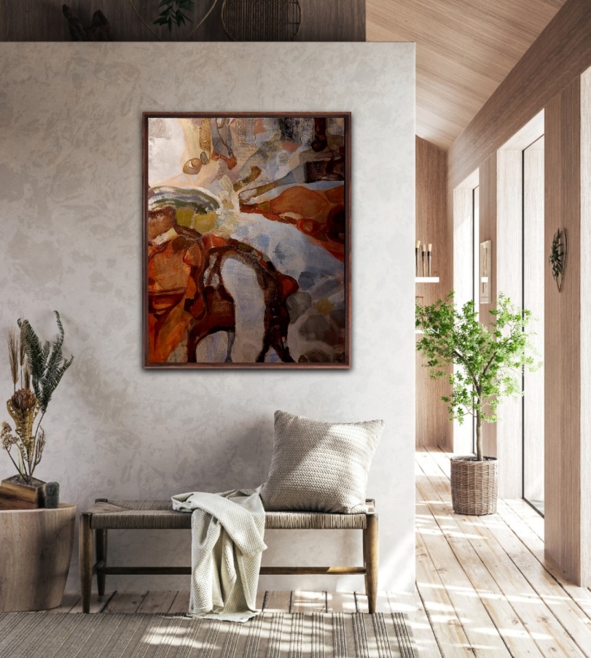 Oil/acrylic on canvas, 120x100cm. Framed in pine.